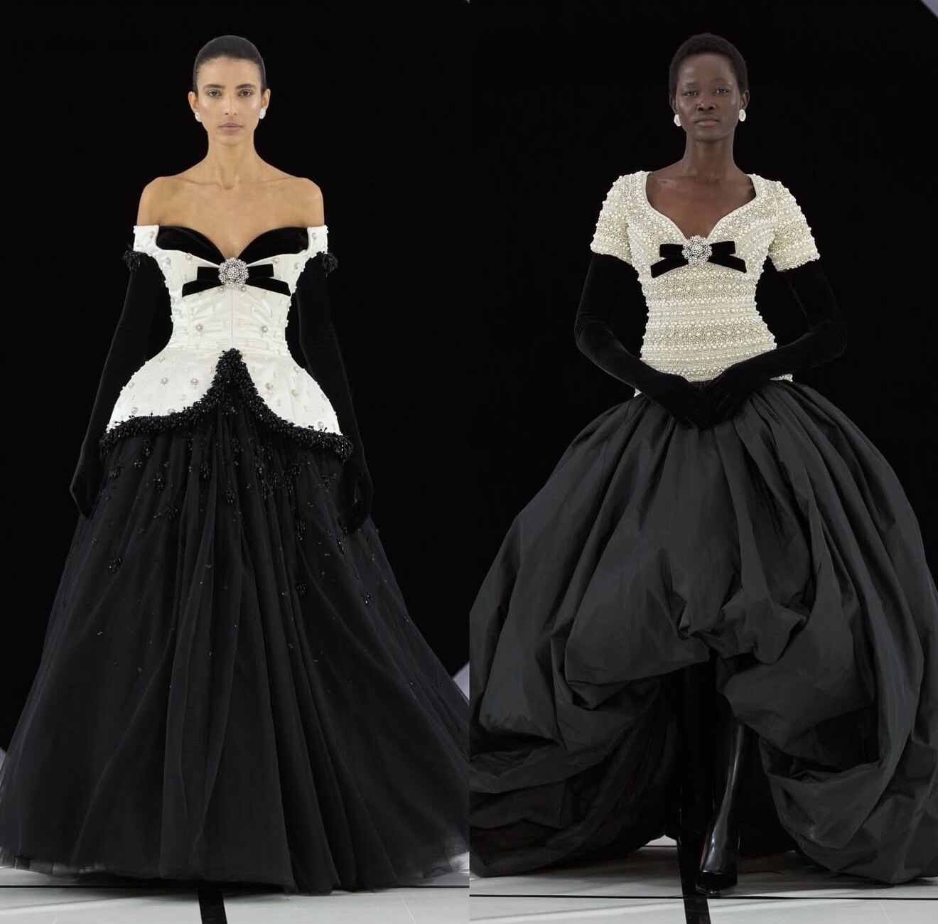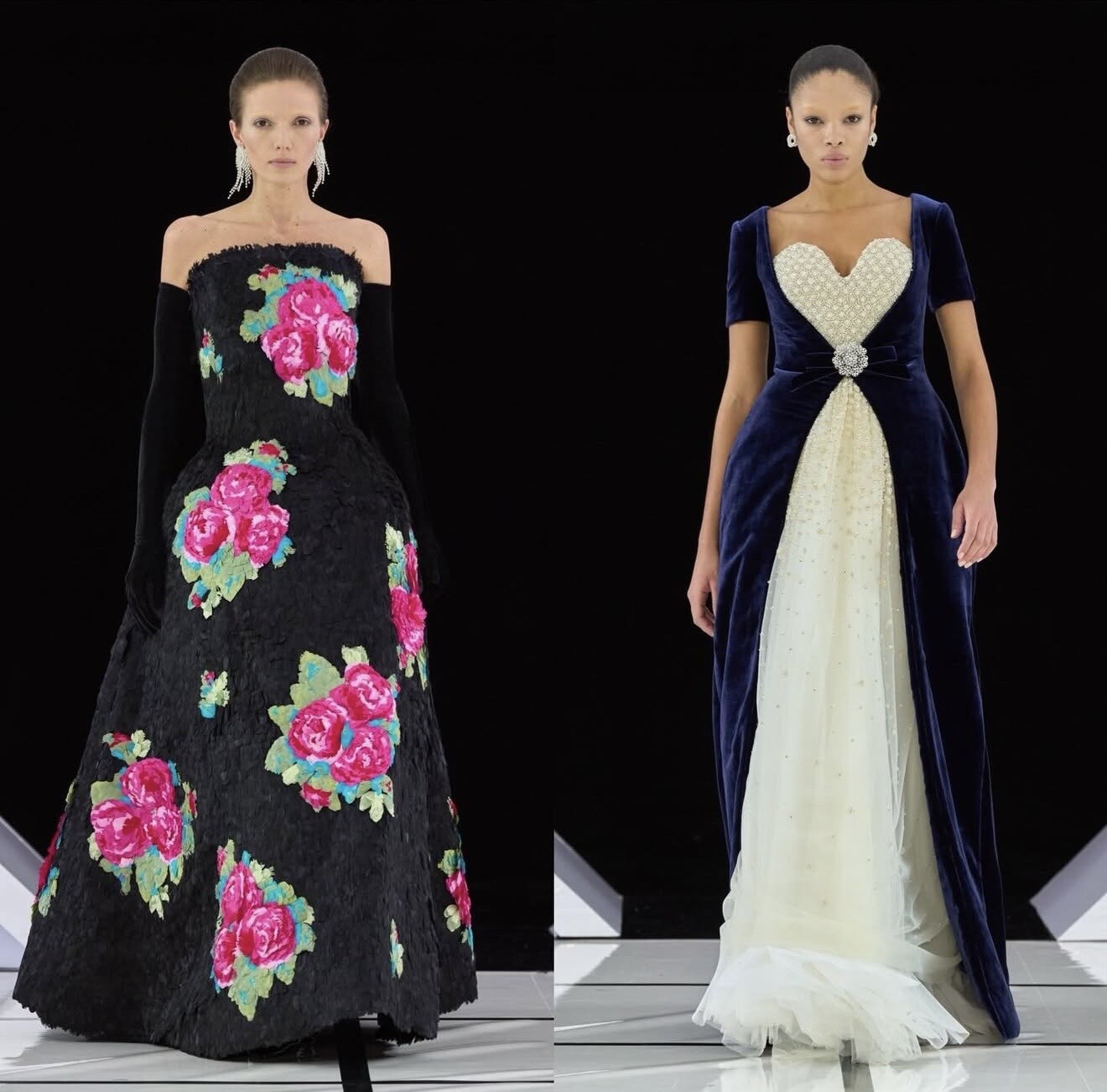 Richard Quinn once again embraced spectacle. Voluminous gowns, high-impact florals and sculptural eveningwear transformed the runway into couture fantasy.