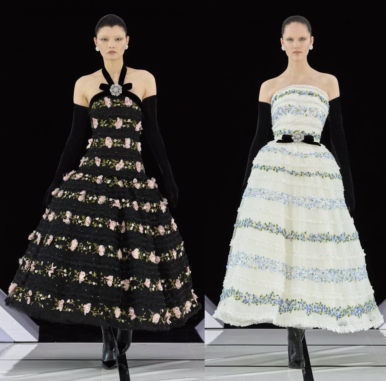Celebrating two decades of the brand, Erdem’s collection reflected on past muses while pushing forward. The atmosphere inside the show carried a quiet reverence as layered textiles, floral embroidery and historical silhouettes moved down the runway.