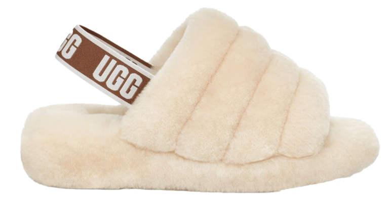 Get this comfy look by pairing these light wash jeans with a cable knit cardigan and fluffy UGG slippers. Match the cream tones with this Bottega clutch tote.