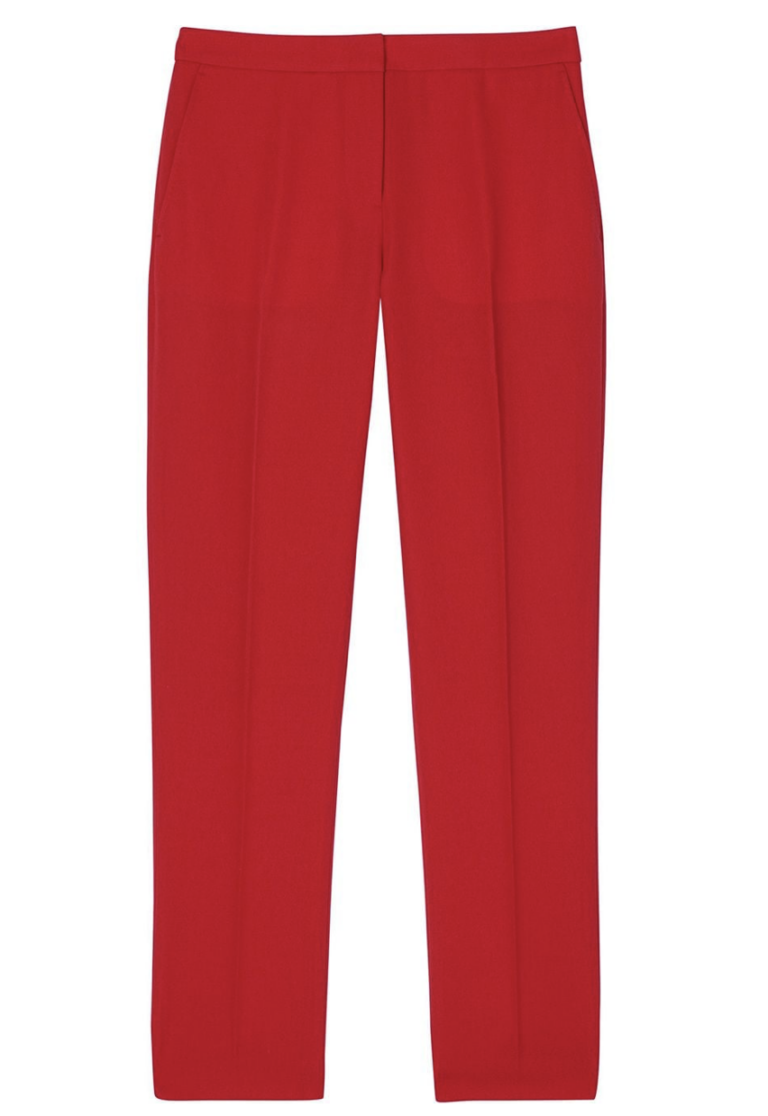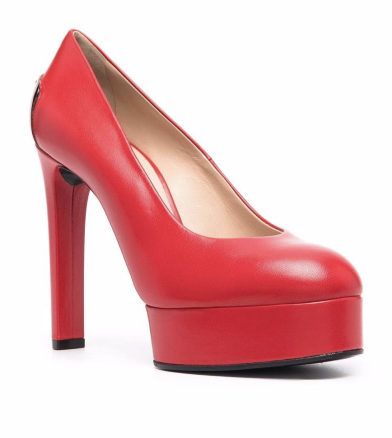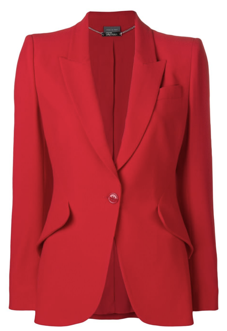 Red has never looked better! This satin red look glows, and Megan looks radiant. Get the look with this red suit and pumps. The bold-shouldered blazer and platform heels helps cinch in the waist and elongate the legs, creating a sultry hourglass figure. Finish off the look and accessorize with these silver earrings.