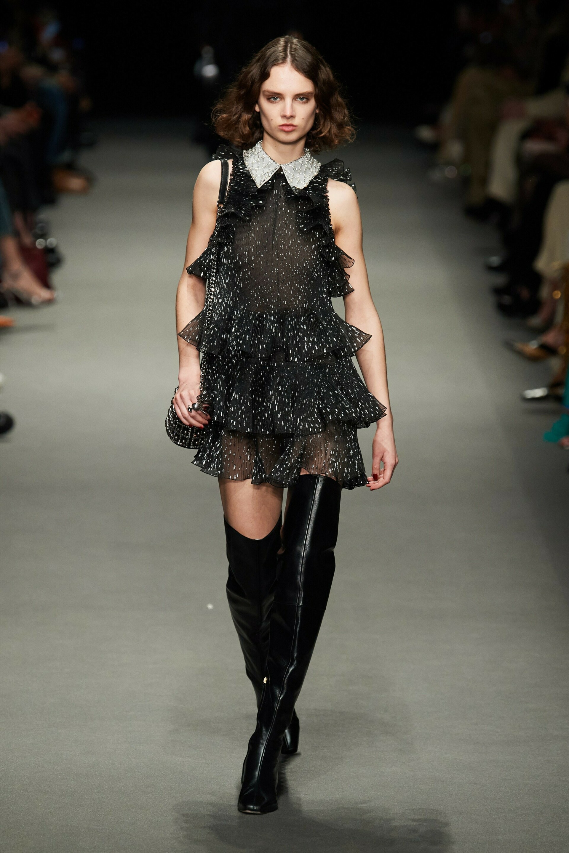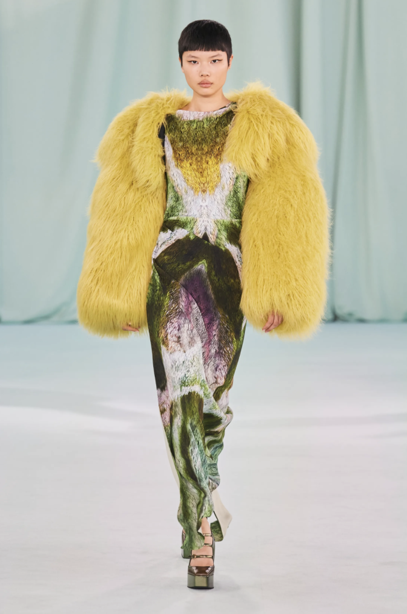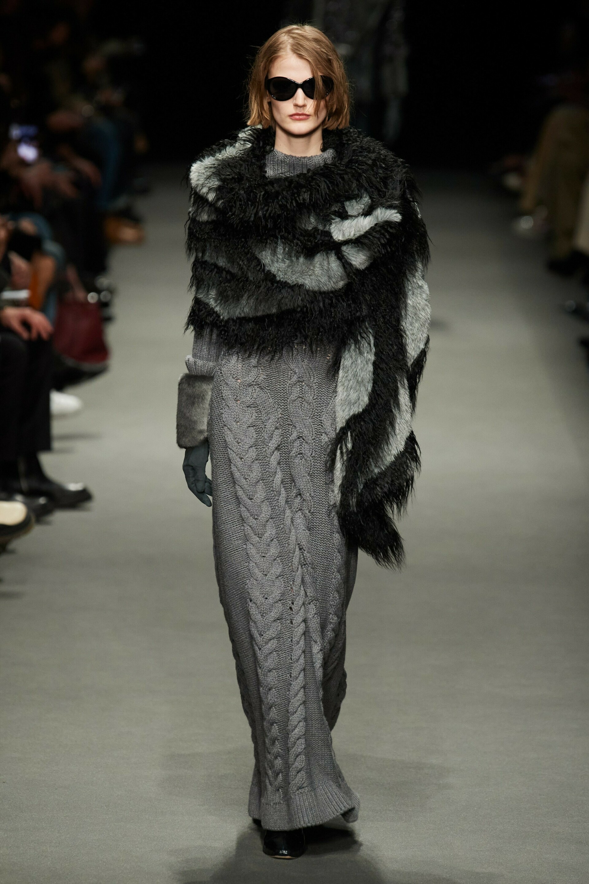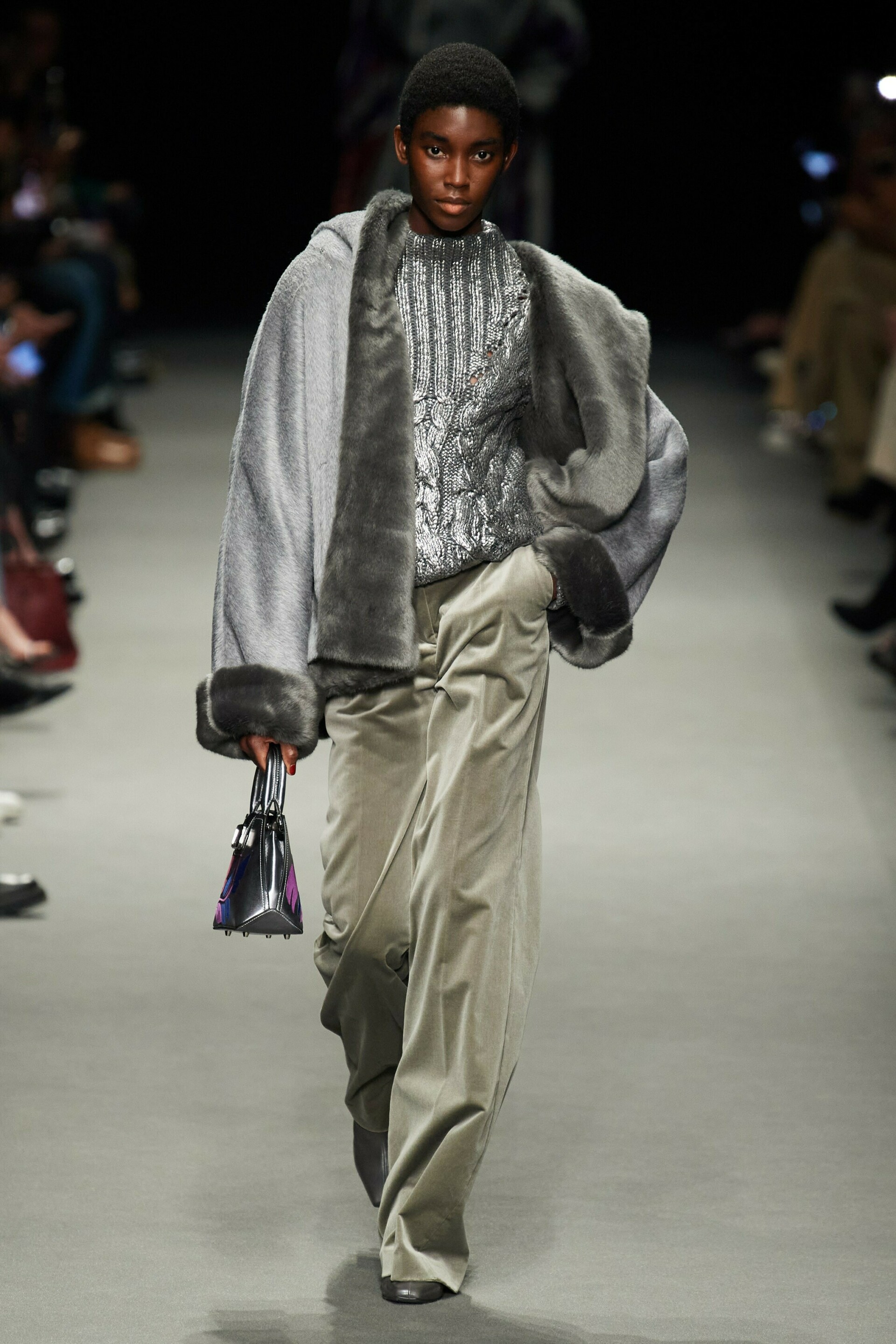 Ferretti used eco fur to craft stunning coats and fur-trimmed boots, while high collars and