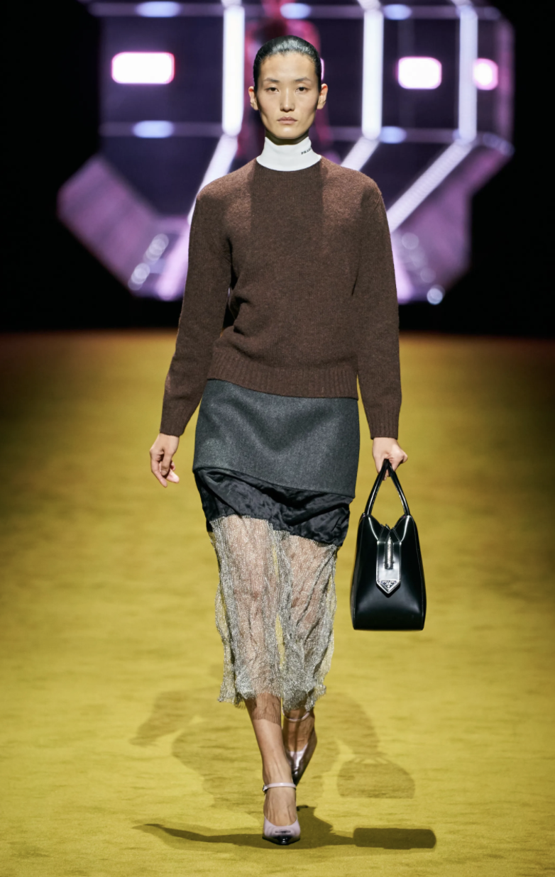 The collection saw elements of almost every Prada collection produced to date, from sci-fi