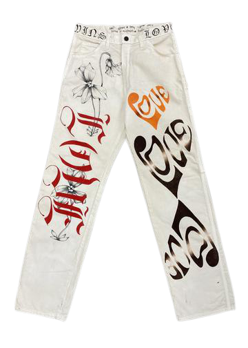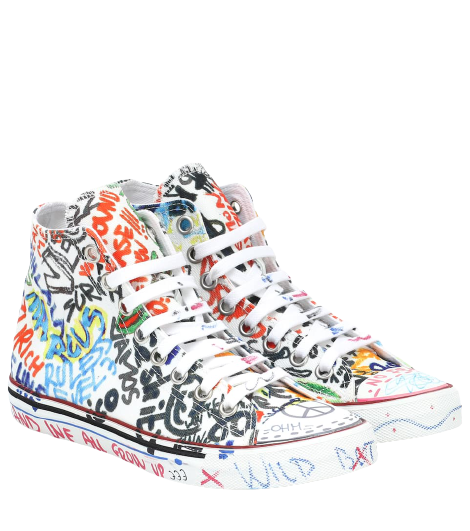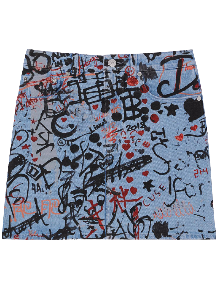 Seen frequently during 2020 on Instagram and in many vintage second-hand stores, the rise of the illustrated clothing. Shown notably in Juliet Johnstone’s designs (worn by Bella Hadid and Dua Lipa), upcycled clothing with hand-drawn designs. The aesthetics of this trend were prevalent in Milan, with orange graffiti-sprayed sneakers and delicate white drawings on black leather blazers (a nice twist on the 2020 blazer trend). A highlight of this style however takes form in a double denim look with a graffiti-style decorated denim jacket with flames and circular patterns. Pulling together the look, a transparent yellow body bag with thick black straps. These trends all shared the similarity of being paired with oversized clothing, a crossover of trends that works perfectly.