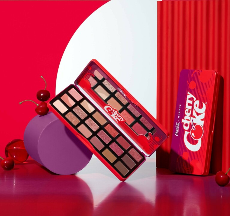 The collaboration comes after Morphe previously teamed up with Coke-Cola for a 1971 Unity Collection, inspired by groovy 1970s prints. The cherry range includes an 18-pan eyeshadow palette, lip gloss, blush and beauty sponge. Each product is encased in lush purple and cherry red packaging, the signature colours of a cherry Coca-cola can.