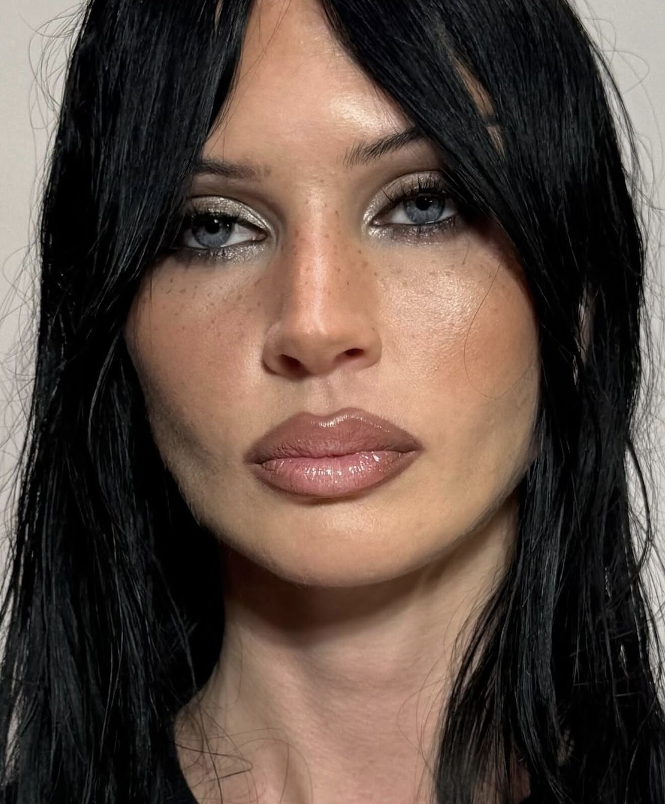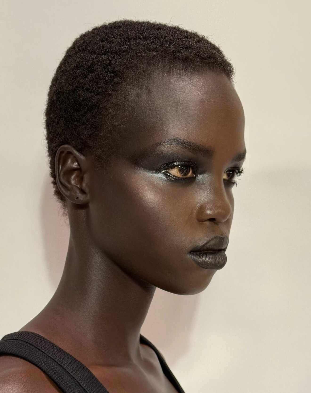 that felt architectural. And then there was the skin. In another era, this runway might have been accompanied by high-gloss highlight and hyper perfected coverage. Instead, the complexion was startlingly honest. Freckles remained visible. Pores remained visible. The finish hovered between matte and sati. Foundation, if present at all, was featherlight. Concealer appeared only where necessary. The cheekbones were not aggressively sculpted. The face looked real, but elevated . A battle between correction and enhancement. In an industry that has spent the better part of a decade erasing texture, this choice felt intentional. Almost defiant.