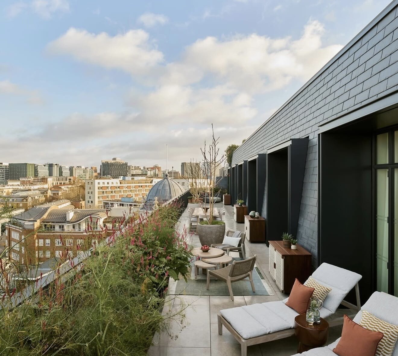 Crowning the property is the spectacular Whiteley Suite, complete with a 125-square-metre rooftop terrace offering sweeping views over West London. It’s a space designed for quiet luxury — intimate yet dramatic, private yet connected to the city beyond.