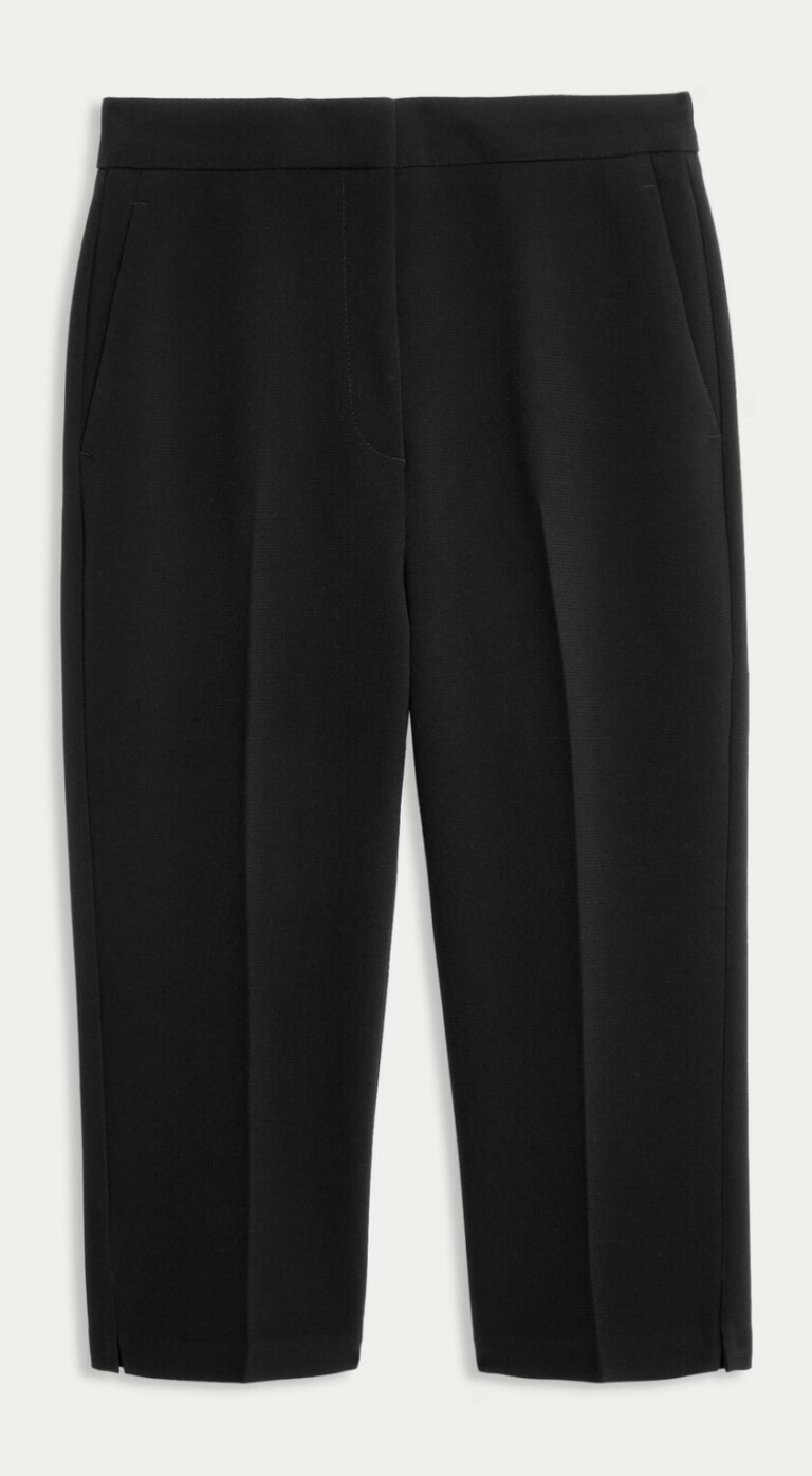 For Spring 2026, the look continues to evolve. Black stretch capris remain the most popular choice, but we’re also seeing tailored versions in suiting fabrics, soft neutrals, and even denim entering the conversation. Styled with structured jackets or simple tanks, the piece easily transitions from day to evening.