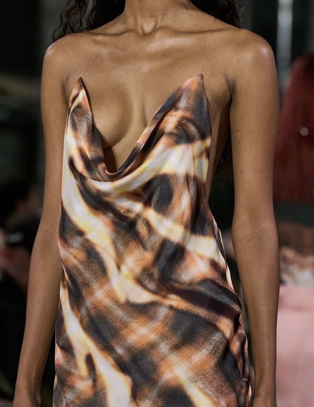 From the very beginning, Casey Cadwallader’s arrival at the Maison has stirred up a lot of drama: Thierry Mugler superfans desperate for a comeback of his Vegas-style spectacles, high-brow editors frowning upon the brand going commercial, and an unexpected fervor from the gen populous (his H&M collaboration sold out in 8 minutes). It makes sense then that with this collection he’s leaning into the newly-found mass media appeal and away from haughty fashion critics. “We’re kind of an emerging brand in a funny way”, he chuckled at the show’s preview.