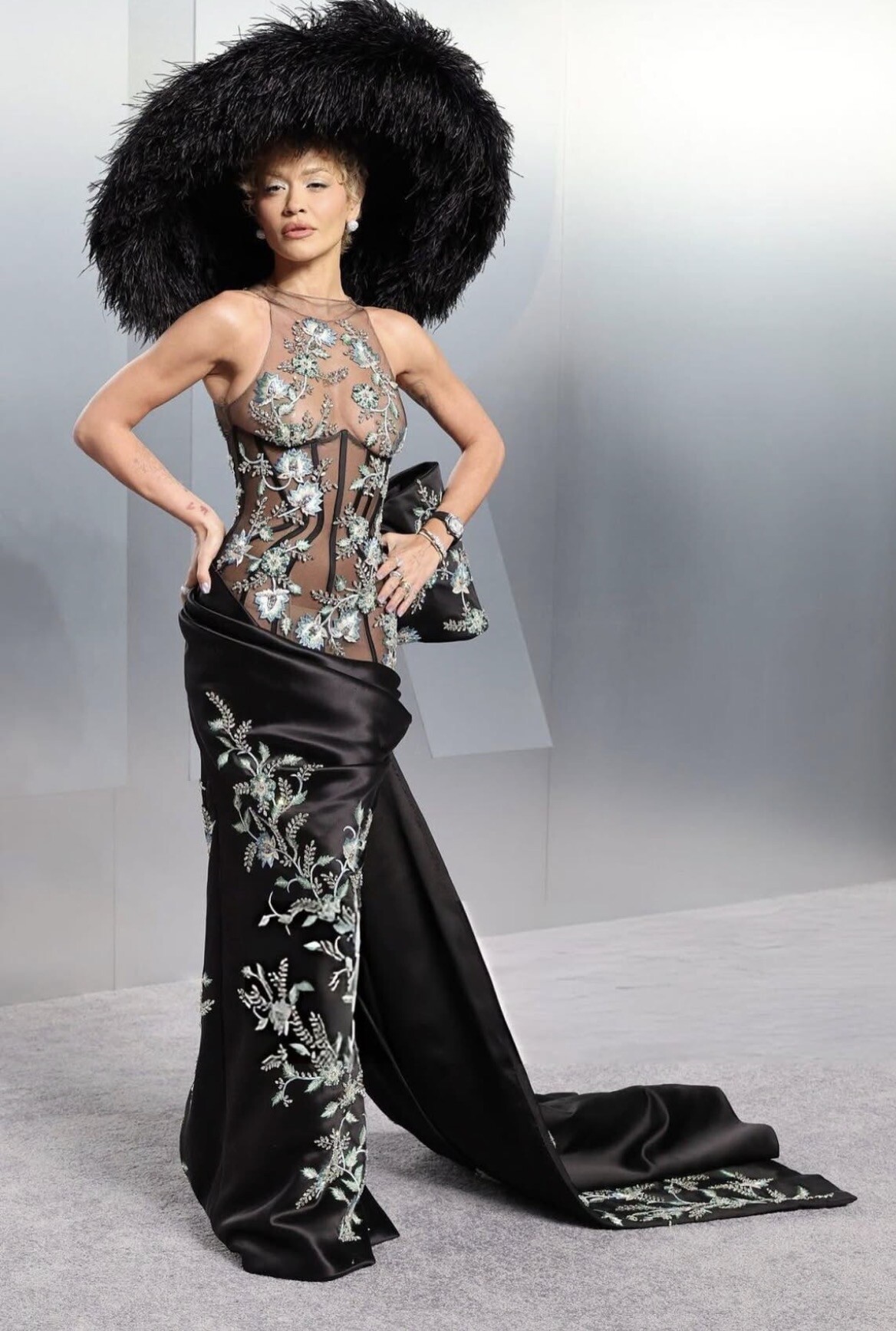 Tamara Ralph emerged as a defining presence of the evening, her designs appearing across multiple standout looks. Pink Pantheress wore a feathered gown that fused softness with dramatic volume, while Simone Ashley opted for sculptural elegance, elevated with Buccellati jewellery. Rita Ora followed suit, fully embracing Ralph’s high-drama aesthetic in a look rooted in opulence and theatricality.