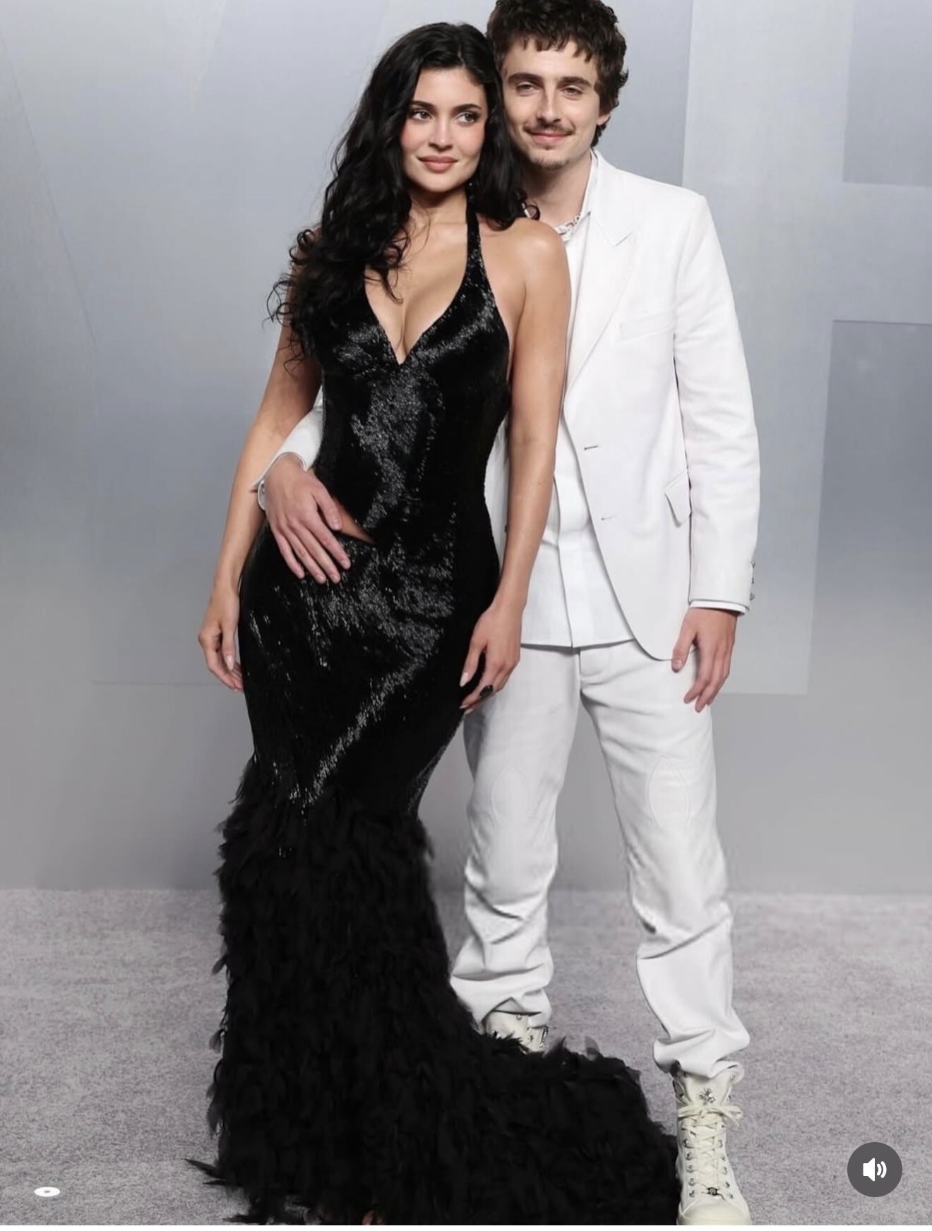 All eyes were on Kylie Jenner and Timothée Chalamet, now a familiar pairing on the awards circuit. Jenner leaned into dark glamour in a black sequined Alexander McQueen gown, complete with a dramatic feathered train that swept behind her. The look was pure McQueen—sculptural, controlled, and cinematic. Beside her, Chalamet delivered his signature modern tailoring in a crisp white Givenchy suit, striking that balance between classic refinement and quiet rebellion.