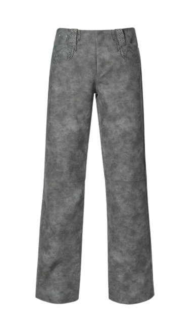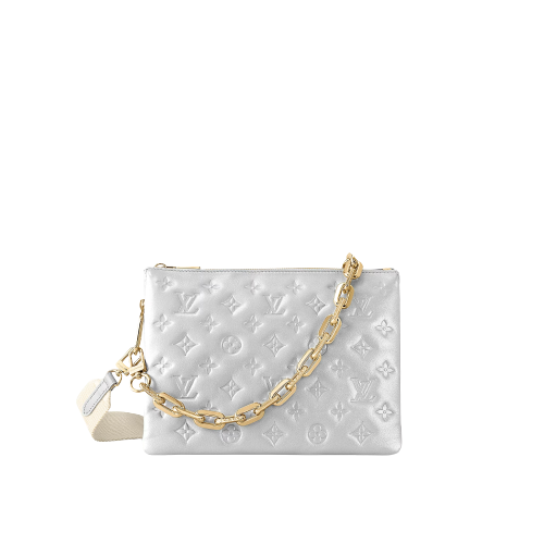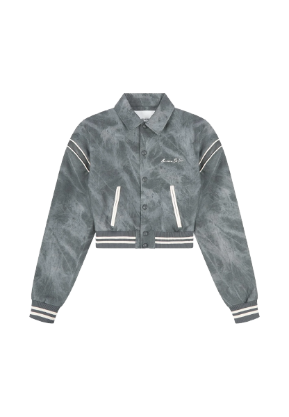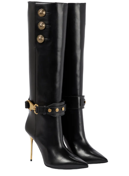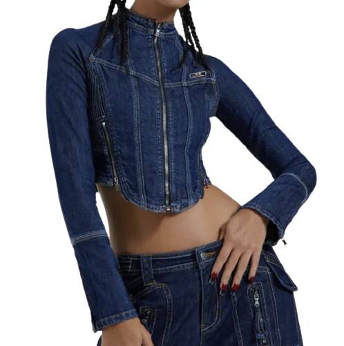The model went head to toe in Louis Vuitton for the 2024 cruise show in Italy, wearing this matching distressed wool cropped jacket and midi skirt. She paired it with metallic striped platform boots, a white monogram clutch with gold hardware, and gold chain earrings.