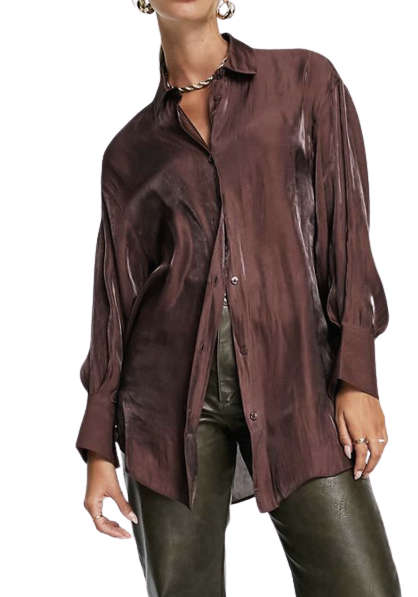 On a visit to the H&M studio in Stockholm, Sweden, Jordan wore this layered look, pairing baggy light-wash jeans with a brown satin blouse. She added some detail with a cream western-style belt and matching sunglasses. She finished the look with a shaggy fur jacket.