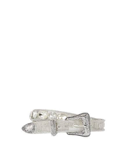 One half of rap duo City Girls, JT, wore this futuristic metallic bodysuit from Ambush. The biker-style suit consisted of long sleeves, shorts, a silver belt, and blue and black panelling. She matched it with a silver chunky-strap bag, black sunglasses, and see-through heeled sandals from Coperni.