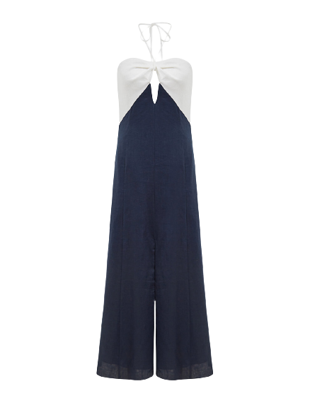 Backless dresses are a quintessential summer staple, keeping you cool and allowing you to show off your tan! Cinzia, from The Girls Bathroom, wore this gorgeous pearlescent blue backless halter dress with a long train for the Little Mermaid premiere. This dress would be perfect for a summer party or dinner, especially to match the sea at a beach club.