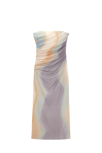 Bandeau dresses are perfect for summer because you can just pull them on over a bikini. Long bandeau tops were super popular in the 2000s, especially paired with a low-rise skirt or shorts, but the 2023 take on the bandeau is a straight tube dress. Whether it’s silk (think Lauren Perez bridesmaid dresses) or graphic like this one Shayley has gone for, this style of dress can be easily dressed up or down for any occasion.