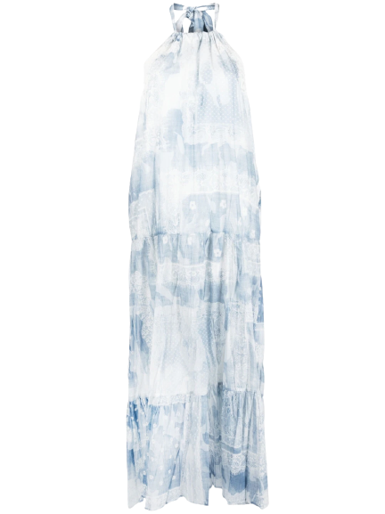 Halter dresses were one of the defining styles of the 2000s, making a comeback recently with the popularity of the Y2K aesthetic. A super cute and versatile look, Samira has styled her straps as extra detail on the arms and gone for an exotic-patterned maxi style for dinner in Jamaica.