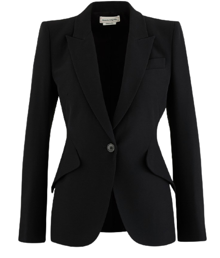 Hailey Bieber stunned us all with her Vegas outfit. She brought out the ultimate black satin blazer-dress by Schiaparelli featuring an enormous golden sculptural detailing on her waist. She paired this with gold hoop earrings, dark square-framed sunglasses and black stilettos.