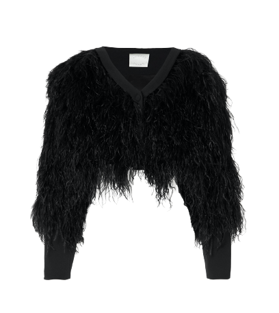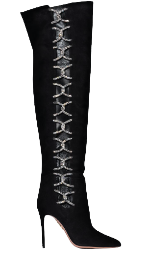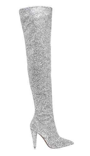 Rita Ora performed on top of the Eiffel Tower last week in various glamourous outfits. One of them was this beautiful custom-made look by Alexandre Vauthier – a black mesh catsuit with a feather-trimmed body. For shoes, Rita opted for a pair of pointy heeled cowboy boots with glitter details. Her accessories included large diamond dangly earrings, a matching chocker and a crystal encrusted head piece. A memorable look for a memorable performance!