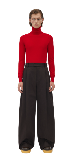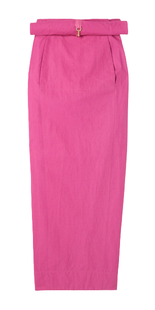 Rosalia showed up at her MAC Collection ‘Aute Couture’ launch in a full Jaquemus outfit. To match the red theme of the cosmetics, she a wore a red Ventoux ribbed wool-blend bandeau top with a hot pink Terra layered linen maxi skirt. For footwear she went with matching pink socks and Les Carre Rond heeled sandals, and to add a pop of colour she chose the orange Le Bambino tote bag. Rosalia serves us hot and playful vibes eveytime she makes an appearance.