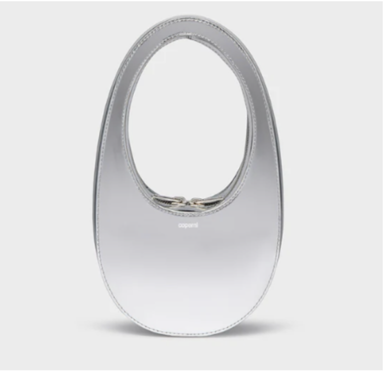 Another silver moment because you just can’t go wrong, and if you are not a fan of. Sparkling crystals, this Coperni Metallic Mini Swipe plain silver bag is for you. Loved by Kylie Jenner and Doja Cat, this bag will get you into the party spirit these holidays but in a slightly toned-down way. It’s a mini version of the classic oval style and features one interior compartment with a double zip opening.
