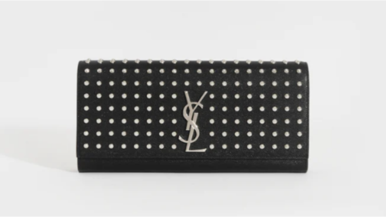 Saint Laurent is an elegant classic which will add a great deal to your party looks. This Monogram Studded Clutch is the definition of sophistication including a silver YSL logo front and centre, complemented by silver studs surrounding it. This is perfect for holiday season.