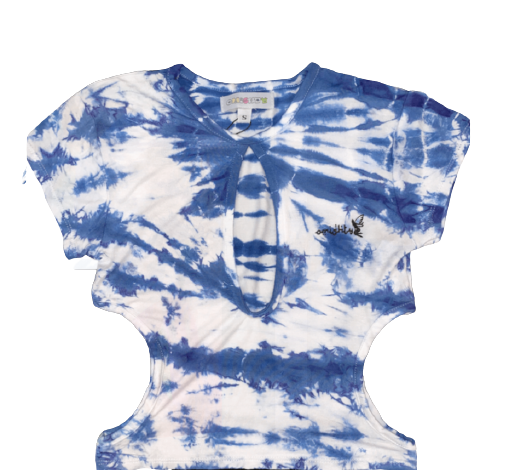 Spotted: another co-ord look. This risqué cut-out set from Omweekend combines many trends including the SS21 law that groovy patterns are back and the bolder, the better. Tie-dye is the perfect print for sunnier days. Style tip: accessories a co-ord minimally with a subtle earring, necklace, or ring.
