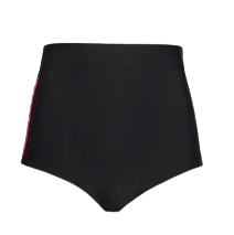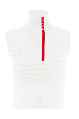 The new Prada Linea Rossa collection goes back to the brand’s roots with a healthy dose of 1990s minimalism. Sleek, simplistic and monochromatic, the collection features a futuristic array of shorts, tops, swimsuits, leggings, jackets and sneakers in black, silver and white with slick flashes of red sporting the Prada logo. The campaign video also embraces the future with a video that echoes the style of the video for Michael and Janet Jackson’s 90s hit Scream. Set in a pristine white space the video features a futuristic game of table tennis overlooked by a round, floating robot with a piercing red eye. The eye-catching video was directed by Albert Moya with creative direction by General Idea.