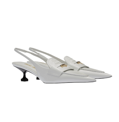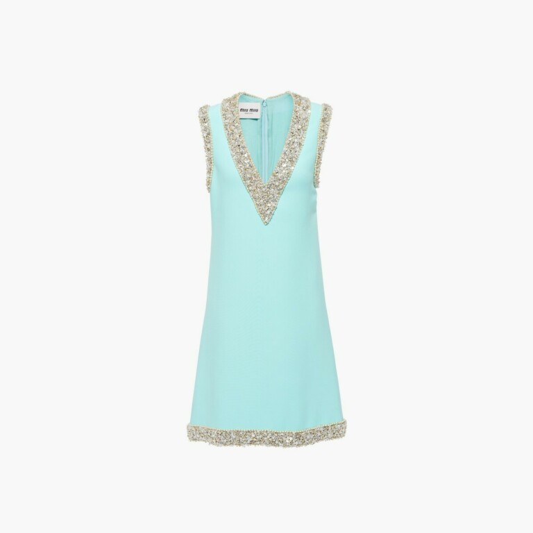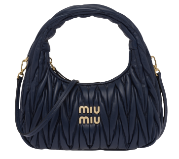 The American model got our eyes riveted on the new Wander bag. This custom Miu Miu look is an absolute strike! She is wearing a V-collard Blue cyan dress delicately embroidered with jewellery. The look is accessorized with grey socks and white pointy heeled moccasins, executed with refinement and chic.