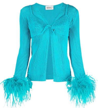 Megan Fox is giving us refreshing glam with this feathery blue gilet and skirt perfectly matching her eyes. Smoothly implemented and styled with a sleek hair bun and prism silver earrings. This look is definitely giving us 2000’s nostalgia, we are seduced!